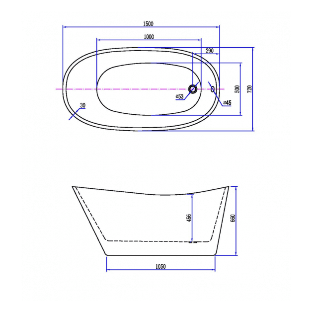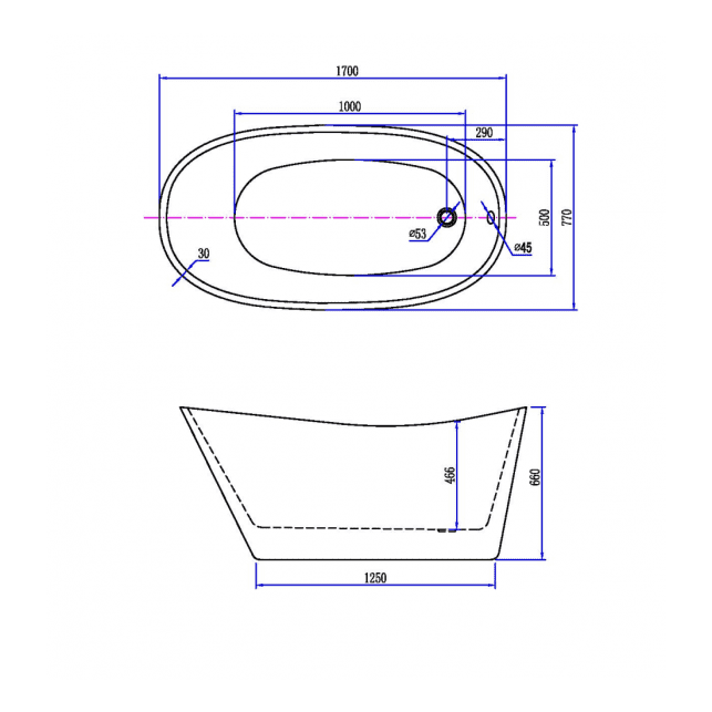 Eine Badewanne im Badezimmer ist ein Genuss. Eine freistehende Badewanne ist purer Luxus. Mit genügend Platz wird eine freistehende Badewanne zu einem echten Statement im Badezimmer. Aber auch in einem kleineren Badezimmer kann eine freistehende Badewanne eine tolle Figur machen. Dieses Bad wiegt 34 kg und enthält einen Überlauf mit einem Durchmesser von 45 mm. Das Ablaufloch hat einen Durchmesser von 53 mm.